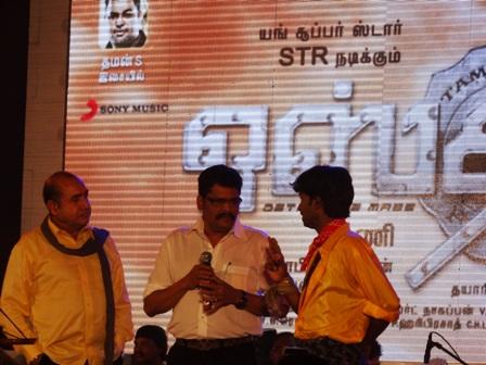 OSTHI AUDIO RELEASE ------------------------------- Much awaited Tamil Movie Osthi Audio Release was held in IMAGE Auditorium at MRC Nagar on 19.X.11 by 7 Pm. Audio was released by Ilayathalalapathy Vijay and received by Lyrics writer VAALI, STR and others. In this they have arranged for a live song sequences in the stage. STR himself has written a song and sung a song on the stage which is in the movie. T R also has sung a song but not on the stage but in the movie. Thaman is the Music director. Thaman’s father was a drummer in the Music troop and has done for T R in his old movies. The main Particitipants in the function are Director K S Ravikkumar, Actor Vijay, Richa, Mylsamy, Vimal, Venkat prabhu, vijayakumar, Vali, Bhagyaraj, Muralidharan, Kalaipuli Thanu, T Ramesh Producer, Dharani, Vimal, and others. TR praised a lot about ST as a wuestion was raised by Bhagyaraj stating that TR has achieved everything and fame but not involved any “kisu Kisu” but TR too got all name and fame but involved in “kinsu Kisu”, immediately T R Shot back and explained so many things. The programme ended in a smooth way and in a grand manner PRO:: NIkil Murugan. Photos, article by : Kumar srinivas/photo-video journalist.