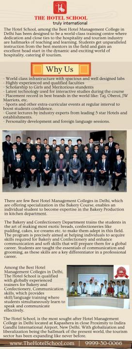 http://thehotelschool.com | The Hotel School, a Hotel Management College in Delhi being a pioneer in the field of education, offers world class facilities, infrastructure and faculties to its students which help in transforming the students into young professionals. Faculties which train the students are experts in their respective field with a valuable experience in their own subjects.