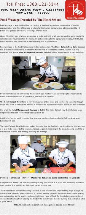 As some types of waste generated in hotels require careful & more specific disposal, for that particular reason now a day’s all hotel management colleges in Delhi makes their student aware about the waste management & The Hotel school is one of such premier institutes which trains its students regarding the same.
