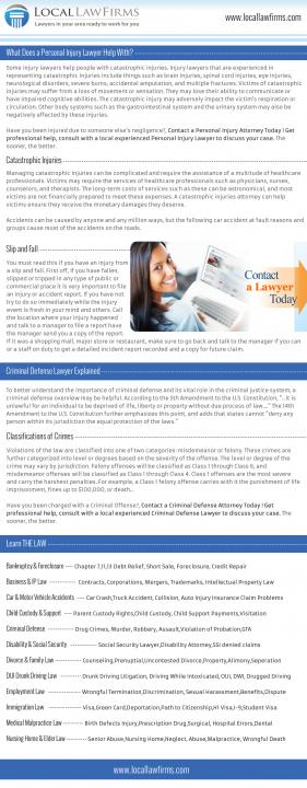 http://www.locallawfirms.com LocalLawFirms.com is a site created and made available strictly for educational purposes and to outline a general understanding of the law in the United States. Since laws constantly change and differ from state to state you are urged to locate the nearest lawyer to you.