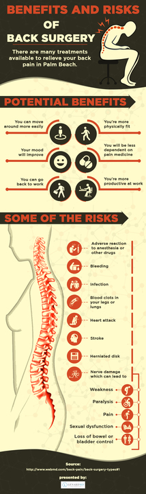 That’s why; before you take a final decision about going for a surgery to treat the deteriorating condition of your back, you must consult an experienced doctor or surgeon to discuss the possibilities in your case. Once you have everything laid out in front of you about the treatment, then you will be in a great position to take a decision about going for surgery. If you wish to gather more information on the surgical procedure of spine, you can also refer to the Infographic provided below on the topic “pros-cons-back-surgery”. This Infographic will shed light on the potential benefits and risks associated with a surgical treatment of spine.