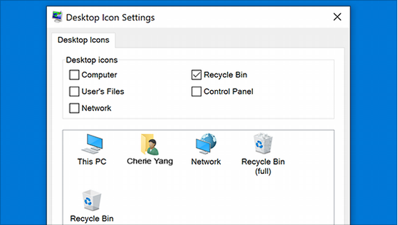 • Show desktop icons in Windows 10