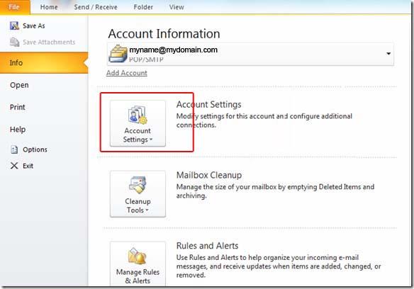 STEP 1: Open Microsoft Outlook 2010 and select File > Account Settings...