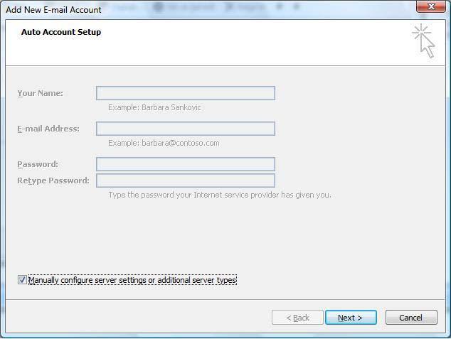 STEP 3: Auto Account Setup: Select "Manually configure server settings or additional server types".