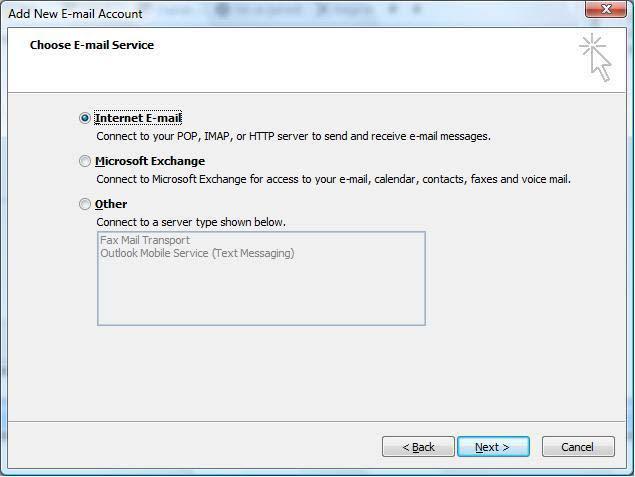 STEP 4: Choose E-mail Service: Select "Internet Email".