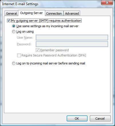 STEP 7: Internet E-mail Settings: Click the "Outgoing Server" tab at the top of the screen and Put a checkmark in "My outgoing server (SMTP) requires authentication" and make sure that the dot is in "Use same settings as my incoming mail server".